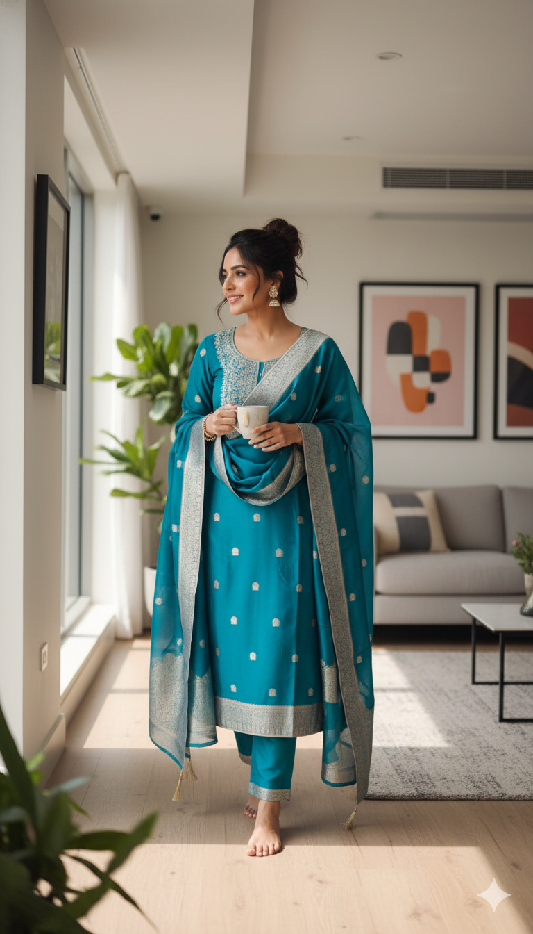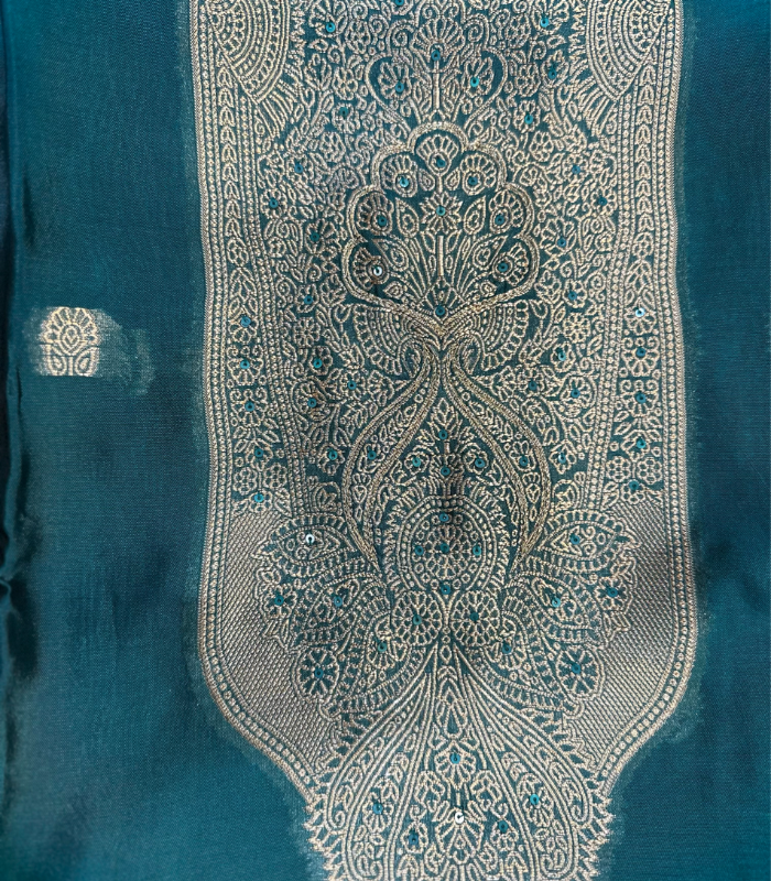 Be the first to review “Blue Color Pure Chanderi Unstiched Suits With Banarsi Weaving” Cancel reply