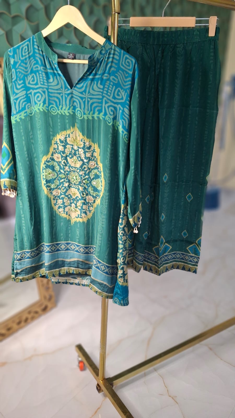 PURE VISCOSE CREPE WITH LINING PRINTED WITH THREAD HIGHLIGHTS