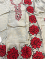 Most Demanding Unstitched Suit Patch Work With Scalping Bottom Pure cerep Duppta Four Patch Work Embroidery With Work Embroidery With  Scalping Color Posta Green & Red