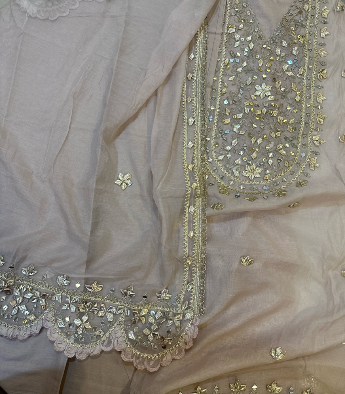 Pure Cotton Mul Gotta Patti Unstitched Suit with Duppta Mul Work Gotta Patti with Salping and Boota Color Beige