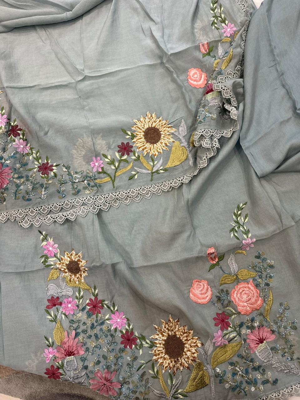 BEAUTIFUL PURE COTTON SUIT WITH 3D EMBROIDERY